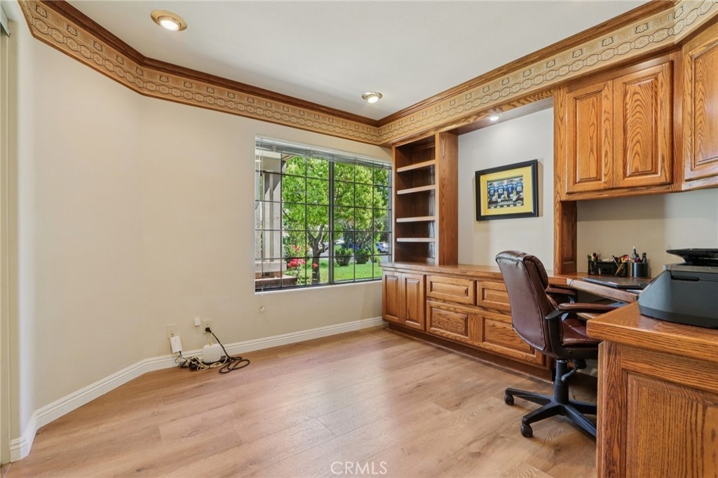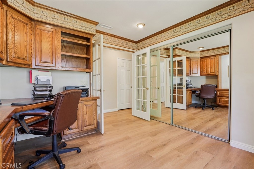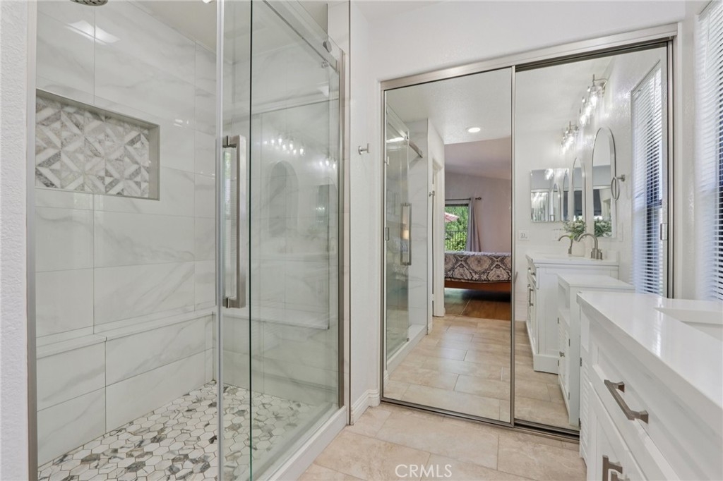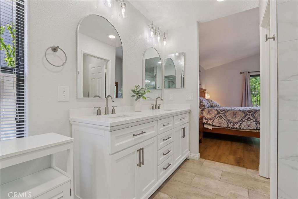 Welcome to this beautifully upgraded single-story home in The Villages, ideally located close to top-rated schools and Temecula’s renowned wineries. From the moment you arrive, the attractive front landscaping creates inviting curb appeal that sets the tone for everything this home has to offer. Inside, you’ll find a bright open-concept layout with the kitchen perfectly positioned to overlook the living room, creating a comfortable space for both everyday living and entertaining. The remodeled kitchen is a standout, featuring new cabinet fronts, quartz countertops, a gorgeous full backsplash, upgraded fixtures, and stainless steel appliances. A charming breakfast nook and formal dining room add both function and flexibility to the floorplan. The home has been thoughtfully updated with all new luxury vinyl flooring throughout, along with fresh interior paint in the kitchen, halls, living room, family room, laundry room, and primary bedroom. The living room offers added comfort and style with a cozy fireplace and surround sound system, making it the perfect place to relax or host guests. The spacious primary suite is a true retreat, complete with sliding glass doors leading to the patio and a beautifully remodeled bathroom featuring a walk-in shower, dual-sink vanity, new mirrors, and new tile flooring. French doors open to a versatile den with built-in desks and shelving, ideal for a home office, library, or flex space. Step outside to enjoy gorgeous professional landscaping in the front, side, and back yards, along with a shed for extra storage and an in-ground jacuzzi that creates a private backyard escape. This move-in-ready home combines stylish upgrades, functional living spaces, and an exceptional location in one of the area’s most desirable communities.